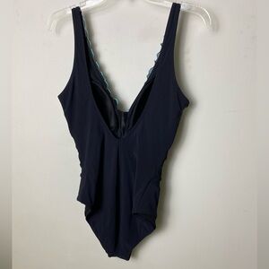 Black One-Piece Swimsuit with Blue Trim. Size 14