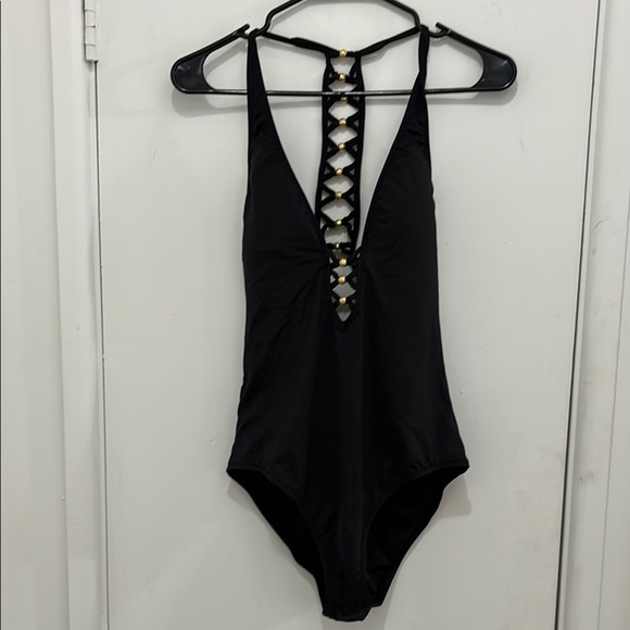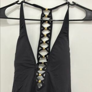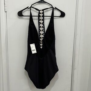 Black One-Piece Swimsuit with Lattice Detail