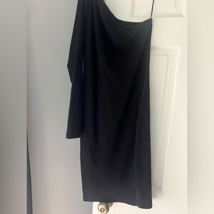 Classy black one-shoulder dress. Perfect for evening wear, very simple and could be dressed up or down with accessories, comfortable enough to wear out all night.