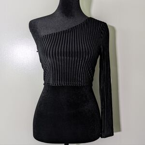 Black One-Shoulder Ribbed Top Velvet Cropped Off The Shoulder Dance Sexy