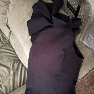 Classic meets contemporary in this striking black bodycon dress. The sleek halter neckline is elevated by a dramatic one-shoulder ruffle detail, creating the perfect balance of elegance and bold flair. With its curve-hugging silhouette and timeless black finish, this piece is ideal for cocktail nights, upscale dinners, or any event where you want to leave a lasting impression.
