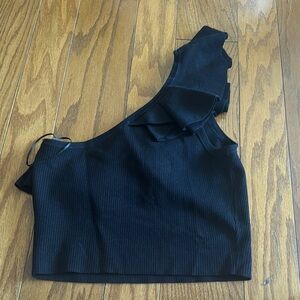 Stylish black one-shoulder top with ruffle detail. Perfect for a chic look. New with tags