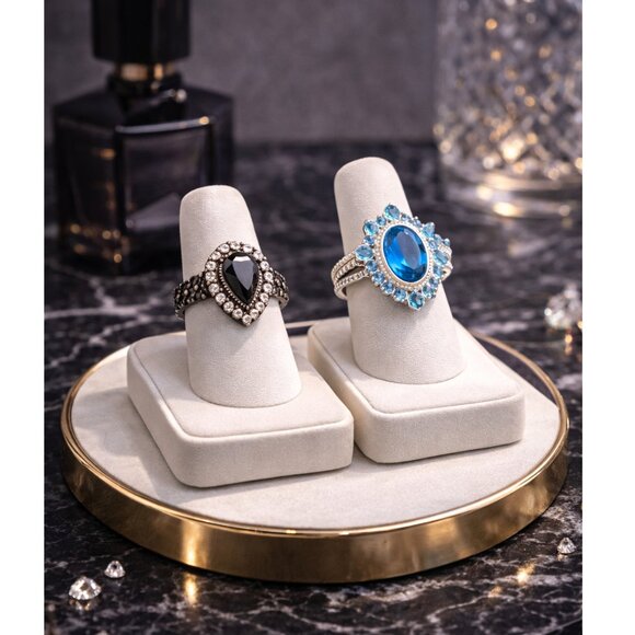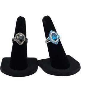 Black Onyx & Blue Rhinestone Rings