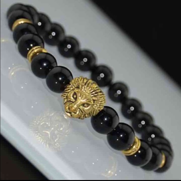 Black Onyx Gold Lion Head Bracelet