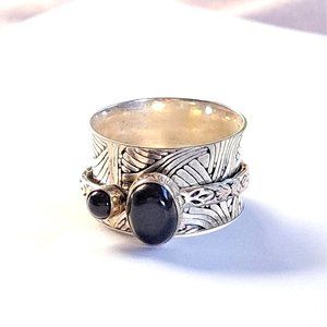 Black Onyx Sterling Silver Mediation Fidget Spinner Ring
