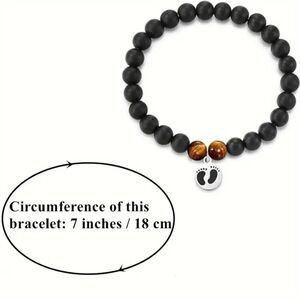Black Onyx & Tigers Eye Stone Dad Beaded Stretch Bracelet Baby Footprint Charm