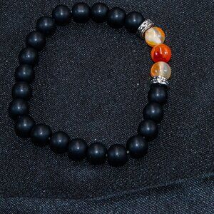 Stretch Bracelet featuring Black onyx and Carnelian Beads with Silver spacers Men or woman