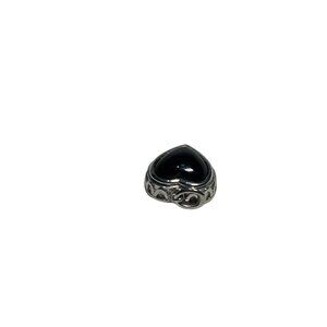 Black Onyx and Silver Heart Shaped Pendant with Filigree Back .5 inch