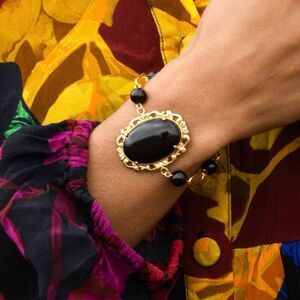 Black Onyx 13.00 ctw Beaded Adjustable Toggle Gold Bracelet New