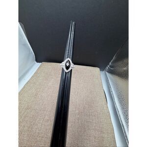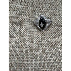 Black Onyx-Style Marquise CZ Halo Ring Sterling Silver Plated Size 6