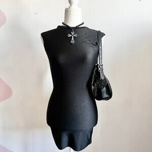 Black Open Back Mini Dress, Y2K Baddie, Streetwear, Hypebae, Clubwear, Small