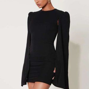 Black Open Back Zip Up Cloak Sleeve Mini Dress
