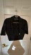 Stylish black cashmere open front cardigan with three-quarter sleeves.