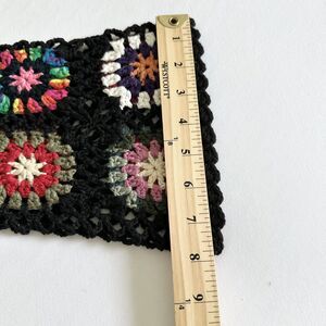 Black Open Front Cardigan Medium Crochet Colorful Granny Square Sleeve Boho
