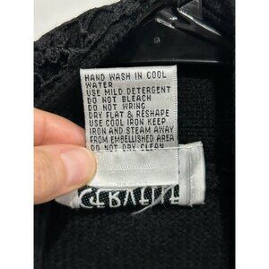 Black Open Front Cardigan Sweater Decorative Buttons Lace Trim Cervelle Sz Mediu