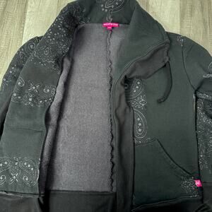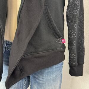 Black Open Sweatshirt Jacket with Designs Y2K Style XS/Small, Good Condition