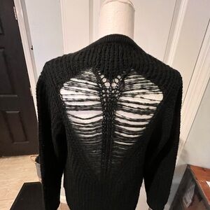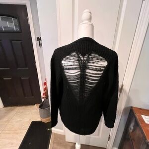 Stay cozy and stylish with this elegant black open-front sweater. Perfect for layering, this versatile piece is a must-have for any wardrobe.