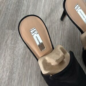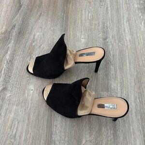 Stylish black open-toe mules. Perfect for any occasion. 4 inch heel. NWOT never worn, no box.