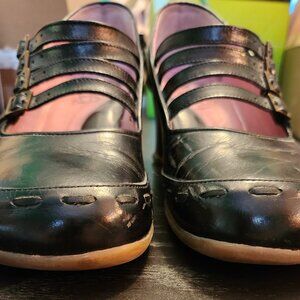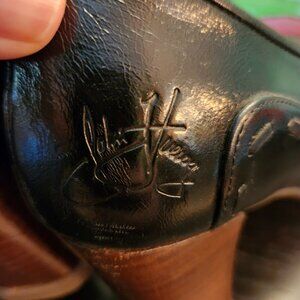 Black Operetta Illeana Fluevog heels, size 11, in great condition. These have been worn a lot, but the leather upper is in excellent shape.