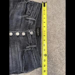 Elevate your denim game with these Black Orchid button fly jeans in size 30. The solid black color and slim/skinny fit make them a versatile addition to any wardrobe. The jeans are made from a comfortable blend of elastomultiester and cotton denim, which provides a stretchy and breathable feel.