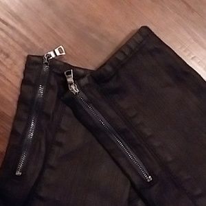 Excellent condition cropped skinnies from Black Orchid! Zippered ankles and pockets! They have somewhat of a sheen/coating on them and a sort of waffle print stitched into the bottom portion. Inseam 23" rise 7.5" and waist laying flat is 12". Size 26, but run smaller than an average size 26.