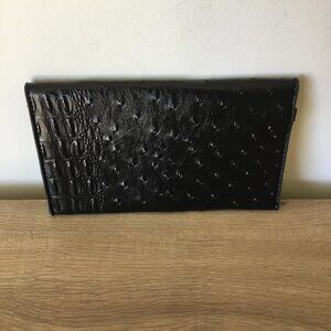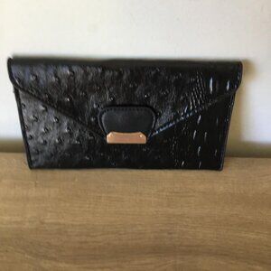 Black Ostrich Embossed Clutch Purse Handbag Suede Inner Lining