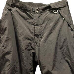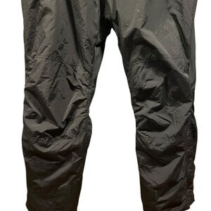 Durable and waterproof. Perfect for outdoor activities. Comfortable fit.missing one button in the frontt see picture.Also a small whiter discoloration on other side of the pants.