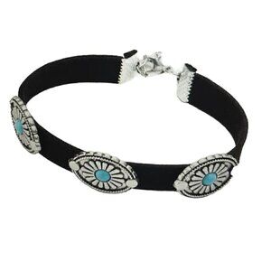 Black Oval PU Leather Inlay Turquoise Bracelet