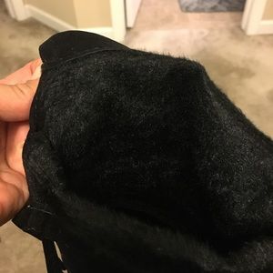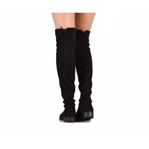 Be chic, stylish and absolutely gorgeous in these Brand new Black OTK Boots. These are my last pair and every woman should have a pair of over the knee boots in their closet. Only 1.5" heel which makes for great comfort. Opening on top is 15 inches in diameter. Calf area is around 13 inches in diameter. Ankle around 10 1/2 inches. Pull up style with drawstring.
