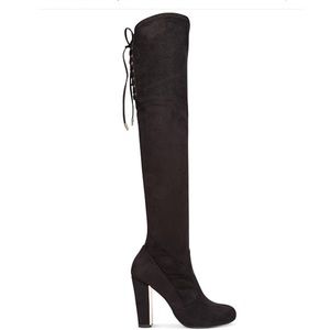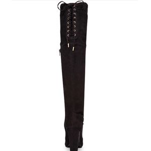 These boots are gorgeous!!! Lace up back for a perfect fit. 3 3/4 block heel with gold accent. Black faux suede. New. Size: 7