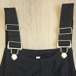 Stylish black overalls featuring adjustable buckle straps. Perfect for casual wear.