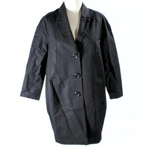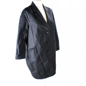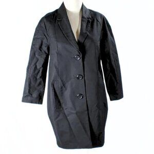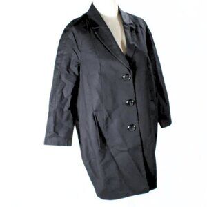 Black Overcoat Trench Chic Fall Outerwear Red Trim & Polka Dot Lining, Y2K Vibes