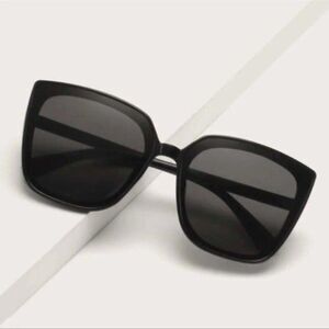 Black Oversized Square Retro Fashion Sunglasses with Smoked Gray Lenses. Metal trim on the sides. UV 400 Protection. Trendy style! New in the package. Comes with a new black case.