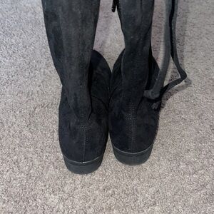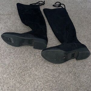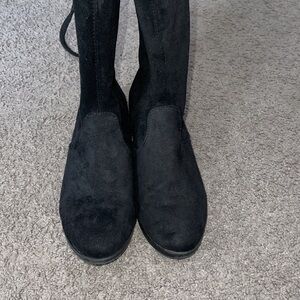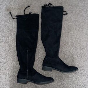 Step out in style with these sleek black over-the-knee boots. Perfect for any occasion, they offer both comfort and elegance.