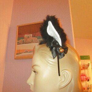 Black PLUSH Cat Ears HEADBAND Costume COSPLAY Goth KITTY Fur BELL Faux Fur