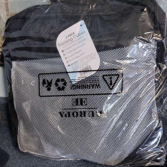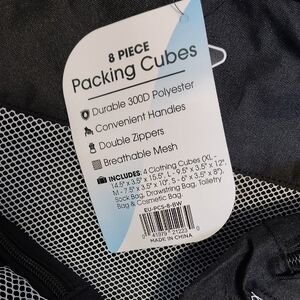 Organize your travel essentials with this sleek black packing cubes set. Perfect for efficient packing and easy access.