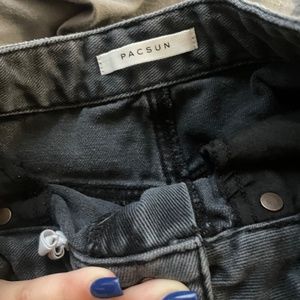 Black Pacsun denim shorts. With fringes on the bottom of the shorts. Size 24-XS 63.5 waist