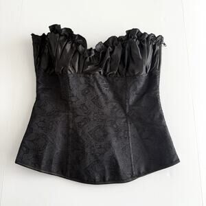 Black Size Large L Paisley Ruffle Bustier Strapless Corset Steampunk Cosplay Top