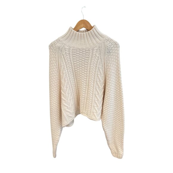 Black Palms The Label Cream Cable Knit Wool Turtleneck Sweater Women’s Small 100