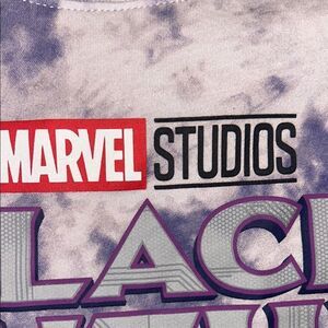 Embrace your fandom with this Black Panther tie-dye tee. Featuring a stylish purple and white design, this short sleeve top is perfect for casual outings.