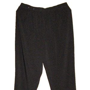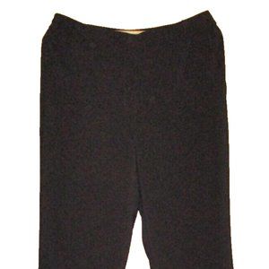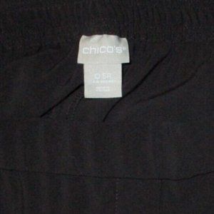 Chico's black pull-on pants with elastic in back of the waistband, faux fly, faux pockets. Fabric is polyester/spandex. Chico's size 0.5 (size small), waist is 30" - 32", hip is 42", rise is 11", inseam is 28", length is 38". In excellent condition, like new.