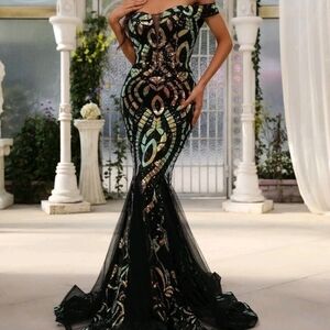Black and Gold Party Sequined Mermaid Maxi Gown Premium Brand And Quality Special Event Maxi Gown