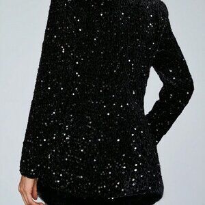 Black Party Women's Design Loose Sequin Fabric Patchwork Blazer