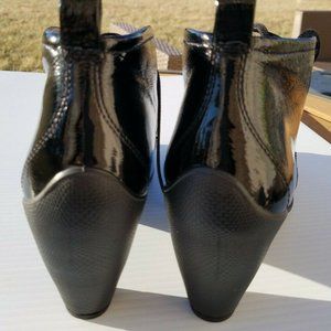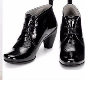 Black Patent 100% Leather Lace Up Ankle Booties Women's EU 40