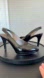 Elegant black patent leather sling back heels with a sleek design. Perfect for any occasion. Cushioned sole. Some slight scuffs - see last photo.