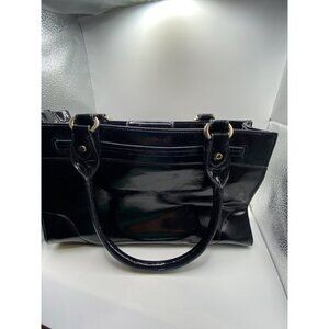 Black Patent Leather Liz Claiborne Handbag With Gold-Tone Hardware & Double Hand