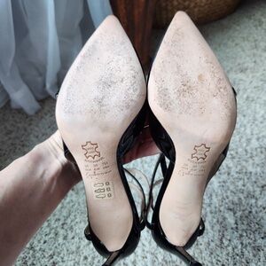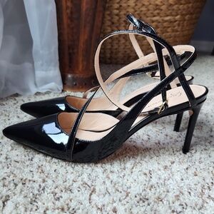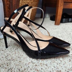 Black patent leather pointy toe heels… 4” high heel. I wore these a couple of times and they are in like new condition