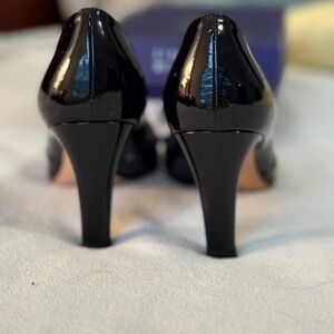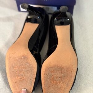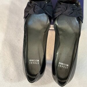 Stuart Weitzman stunning and classic black patent leather sling back heels with a bow. Only worn a few times before my feet changed size. A favorite dressy shoe. Excellent used condition.