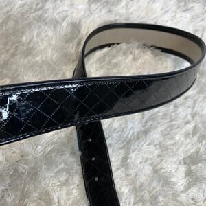 Black Patent Leather Wide Quilt Textured Belt Small
