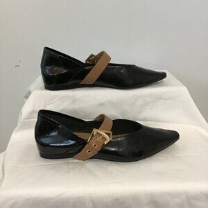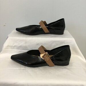 Black Patent Mary Jane Ballet Flats with Pointed Toe Size 7.5